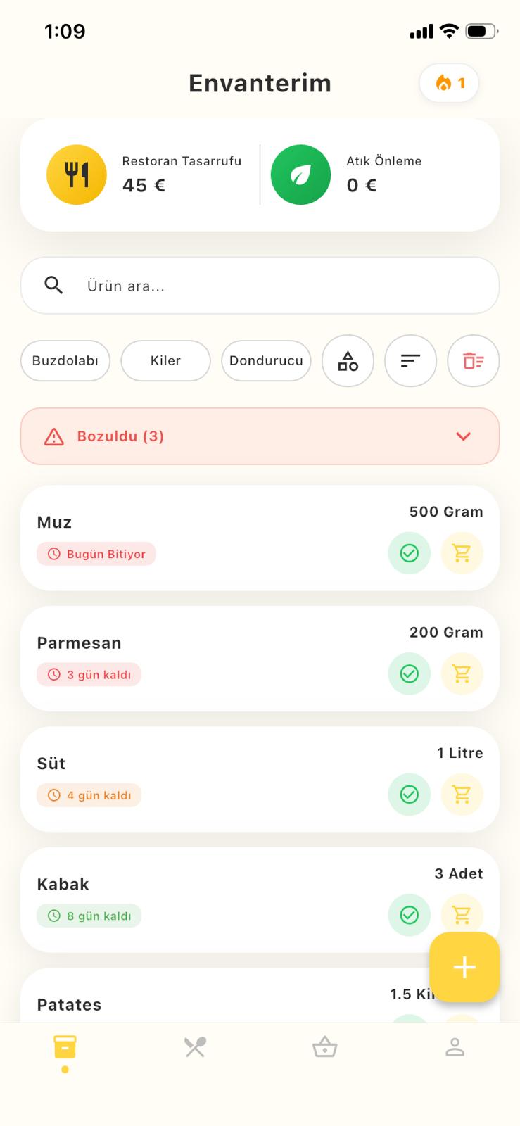 Akıllı mutfak asistanınız. Son kullanma tarihlerini takip edin, tarif önerileri alın, hem paradan hem gezegenden tasarruf edin.